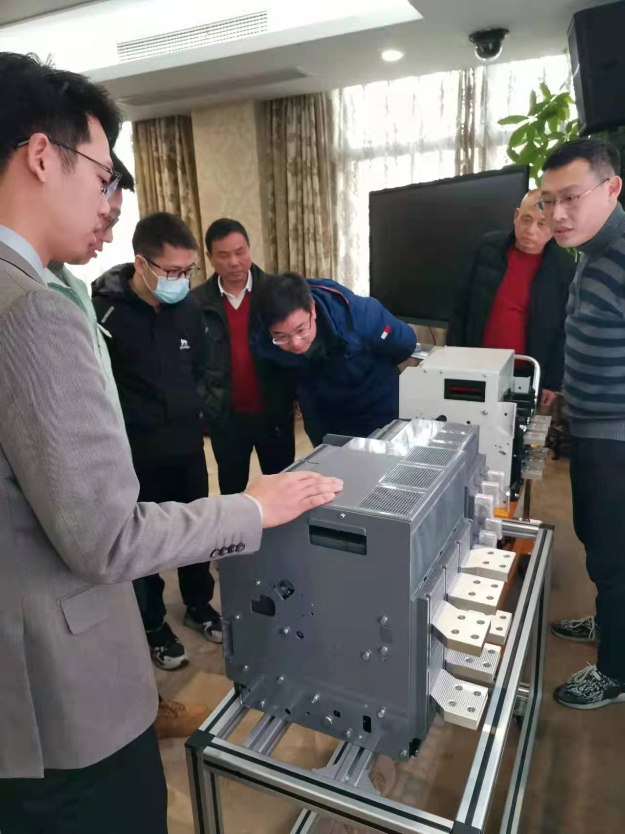 公司总经理潘斌华先生,结合用户实际案例,就新一代断路器产品的低功耗、低温升、小型化、高短耐的显著特点,向领导们进行了详尽的汇报。